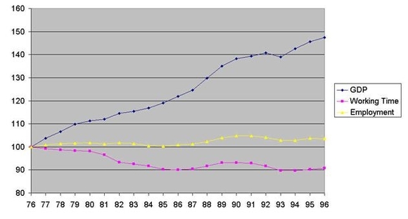 The energy crises of 1973 and 1979 resulted in stagflation, with no economic growth and increased prices and unemployment. 23 Full employment schemes were under pressure because of the increasing public debt and rising inflation. The Western focus of governmental policy became more about inflation control, meaning that full employment could not be guaranteed anymore. The economic models show that placing employment above the needs of an economy at such a time would have increased prices even further. From the 1980s onward, the economic model of market thinking regarding deregulation, privatization, and free trade deepened. The idea was that all governmental interventions in the market had the potential to frustrate economic growth. Economic growth (national income) was a way of making markets work more efficiently. And growth would trickle down to the whole population and create jobs (See the article, ‘Revaluing labour’ in this dossier).