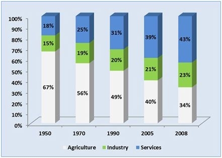 Before 1980, most of the global employment growth took place in the Western world, but from the 1980s onwards, emerging East Asian countries and other parts of the developing world showed impressive employment growth due to an increase in international trade. Simple service-related tasks generated through computerization (and the fabrication of its components), like production work, could be outsourced and gave countries like China, Vietnam, Mexico, the Philippines and India, the opportunity to create jobs. However, it had a negative impact on the wage levels of the less-skilled workers in developed countries as a result of global competition (See the article, ‘Creating a global labour market’ in this dossier). 24