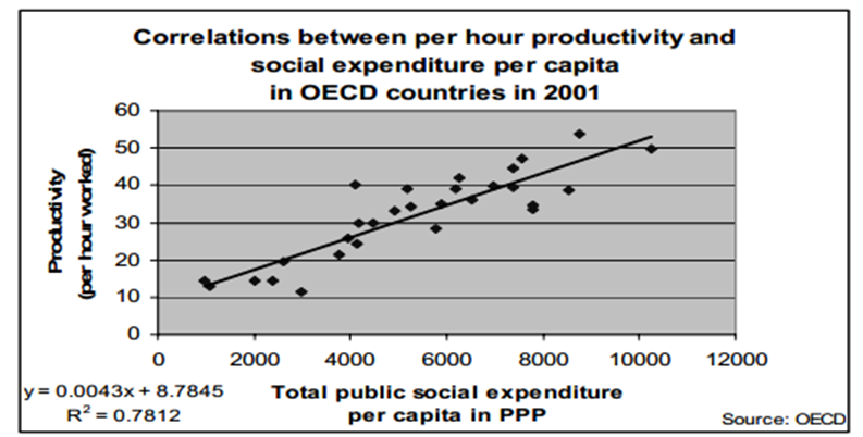 Figure 1: OECD Countries with higher social expenditure have higher productivity