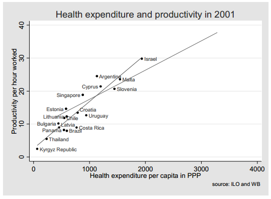 Figure 2: Non-OECD countries with higher health expenditure have higher productivity