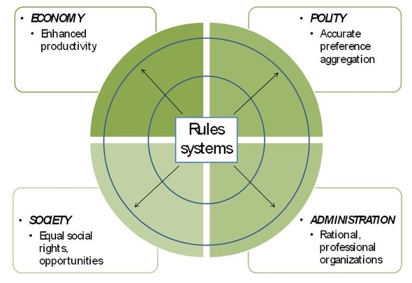 Modern-day expectations of what the state must be able to deliver are high and growing, and these expectations are extended to fragile states via the ‘good governance’ agenda of donor agencies. Viewed through the lens of rules systems, a state that is performing well needs to be more than just a well-functioning state apparatus, as the ability of the state to perform is closely related to how well it fits with the social context in which it is embedded.