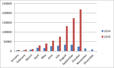 Recent migration developments present a challenge to European countries. Europe will probably record more than one million asylum applications in 2015; up to 450,000 are expected to obtain the status of ‘humanitarian migrant’. From January to August 2015, Frontex detected more than 500,000 illegal border crossings to Europe – nearly twice as much as 2014. UNHCR data show an increase in the use of the three routes over the Mediterranean Sea to over 200,000 irregular migrants in October (see Graph 1 by clicking on the icon to the left). Initially, migrants from both Africa and the Middle East mainly used Libya as the country from which to cross the Mediterranean Sea. In early 2015, migrants mainly used both the Eastern and Central Mediterranean routes (see Graph 2 - by clicking on the icon to the left), but in October 210,000 of the 218,000 migrants who reached the Mediterranean crossed the border from Turkey to Greece. This influx into Europe is still relatively low compared to the total number of refugees, particularly in the Middle East. Since March 2011, 4.3 million Syrians alone have been registered as refugees, of which approximately 3.5 million are in Egypt, Lebanon, Jordan, Iraq and Turkey.