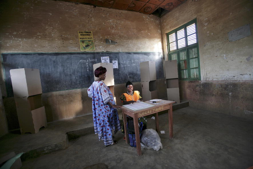 Bunia, D.R Congo, 2006. A woman voter checks in before casting her vote during the elections after years of violence. UN Photo/Martine Perret.