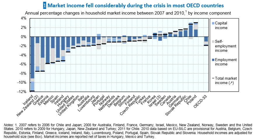 Figure 2: Market income in OECD countries between 2007 and 2010, Source: Michael Forster, Horacio Levy (May 2013), Crisis Squeezes Income and Puts Pressure on Inequality and Poverty, Results from the OECD Income Distribution Database, OECD.